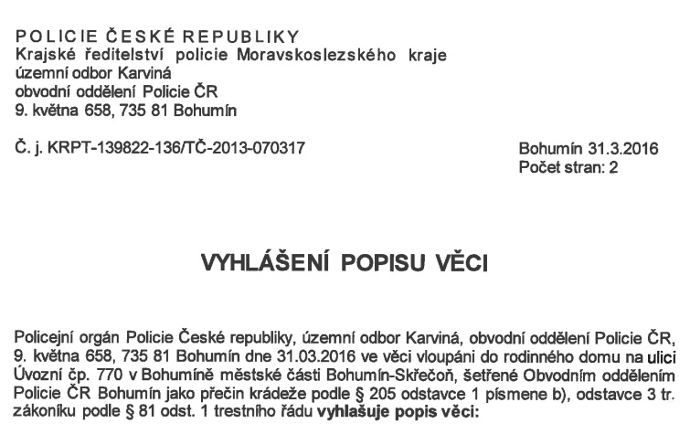 Městský úřad BohumínMasarykova 158Bohumín 735 81