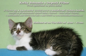 Miniútulek Kočky Bohumín a Depozit Příbor vás zvou na umisťovací výstavu koček, která se koná při Mezinárodní výstavě koček v Ostravě - Dolní oblast Vítkovic, v multifunkční aule Gong. Podrobnosti k a ...