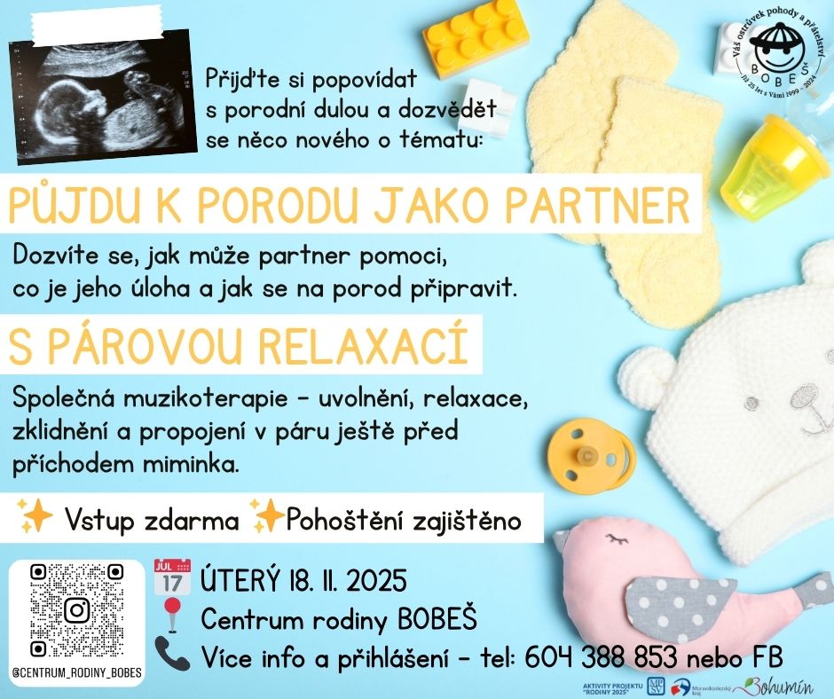 Přijďte si popovídat s porodní dulou a dozvědět se více novinek na témata "Půjdu k porodu jako partner" a "S párovou relaxací". Pohoštění zajištěno, vstup je zdarma. Nutná rezervace předem na tel: 604 ...