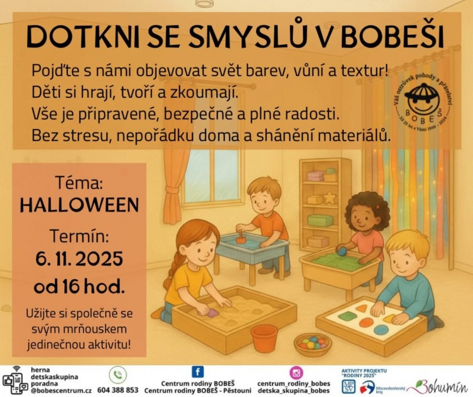 Pojďte s námi objevovat svět barev, vůní a textur. Vše je bezpečné a připravené. Bez stresu, nepořádku doma a shánění materiálu. KDY? 6.11.2025 V KOLIK? OD 16H REZERVACE PŘEDEM NUTNÁ, na tel. 60438885 ...