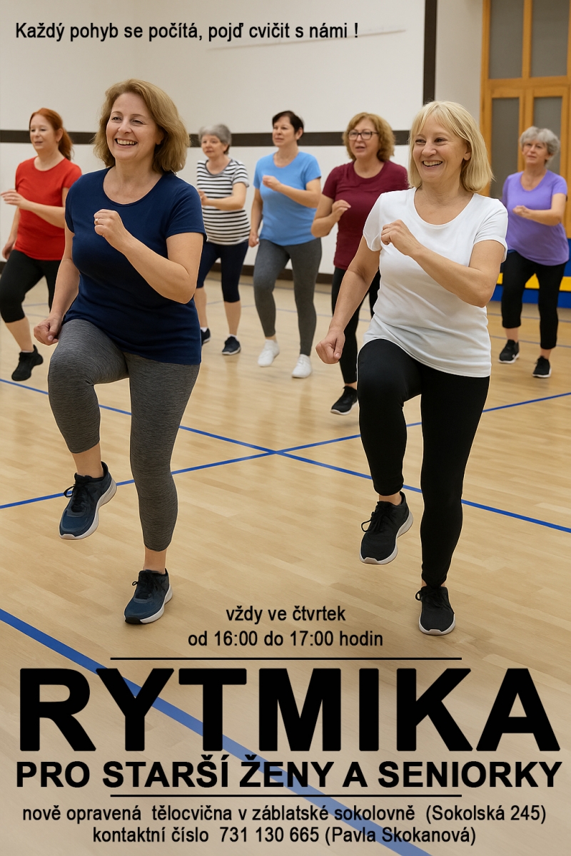 Rytmika je oddílem pro starší ženy a seniorky, schází se každý čtvrtek od 16 do 17 hodin. Kontaktní osobou je místostarostka TJ Sokol Záblatí Pavla Skokanová, tel. 731 130 665.