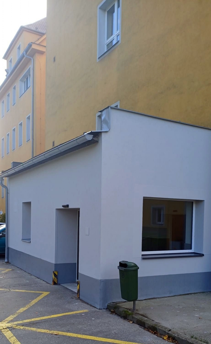 Stavební firma také obnovila venkovní fasádu kolem vchodu, součástí této fáze byly drobné opravy.