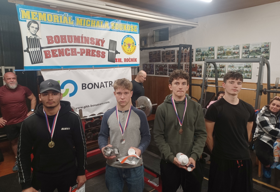 - V kategorii dorostenců zvítězil Sebastián Horvath s vytlačenými 130 kg, před Matějem Seidelem s 97,5 kg, Ondrou Pukovcem s 72,5 kg a Erikem Pospíšilem s 60 kg.