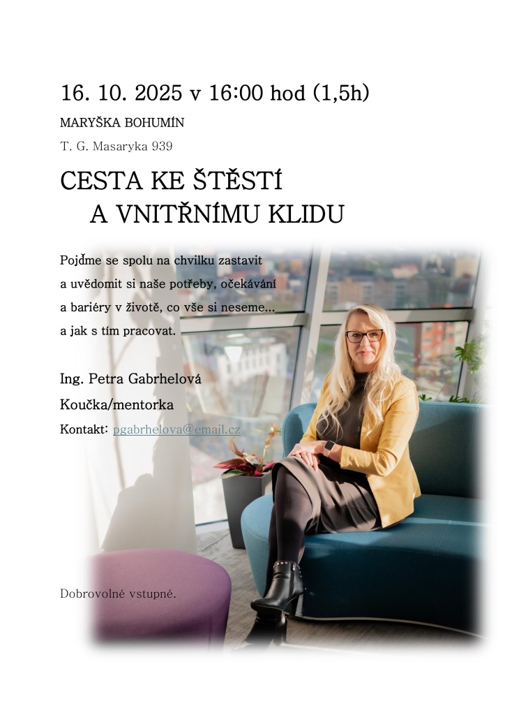 Vydejte se s námi na cestu do hlubin vlastní duše... Lektorka nové přednášky je člověk, který si našel své poslání v pomoci lidem uvnitř, miluje psychologii a seberozvoj. Vystudovala vysokou školu se ...