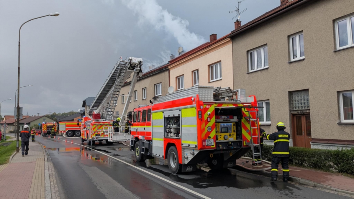 SKŘEČOŇ – Ve Skřečoni v pondělí odpoledne (29. září) hořel přístřešek poblíž dvoupodlažního bytového domu. Požár se rozšířil nejen do některých bytových jednotek, ale i na střechu domu. Zásah si vyžádal omezení provozu v ul. 1. máje. Obyvatelům, kteří se do svých domovů teď nemohou vrátit, město nabídlo náhradní ubytování.