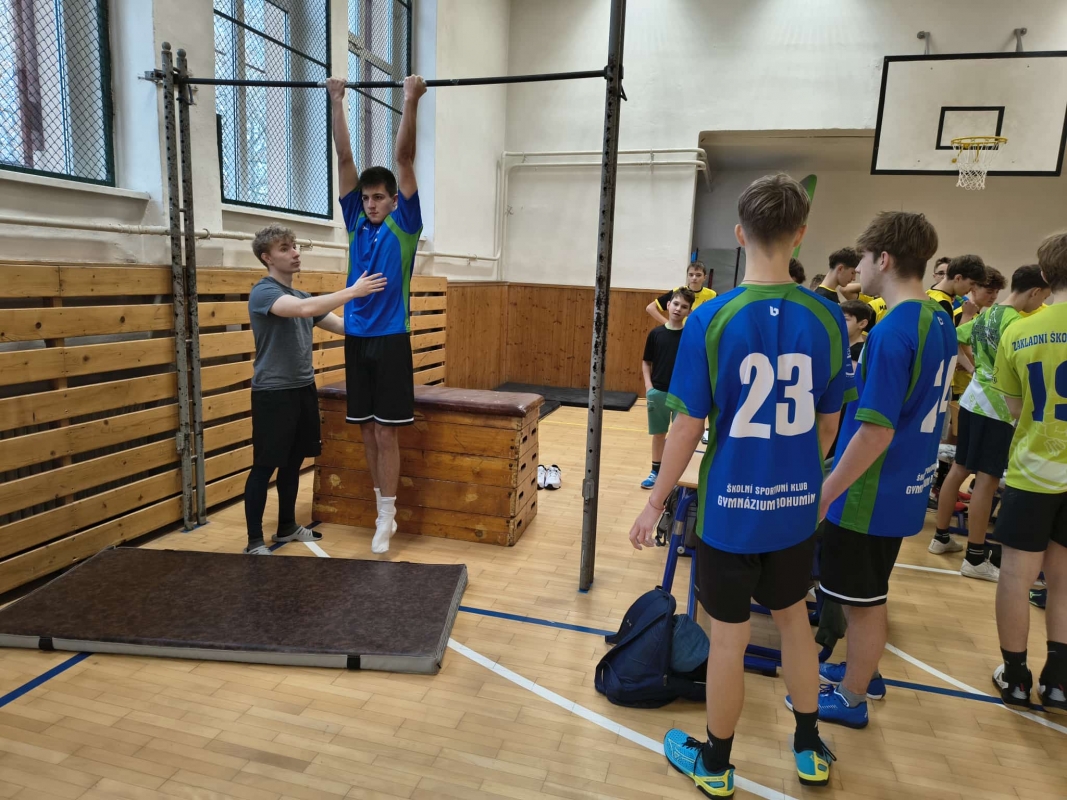 Vánoční silový čtyřboj Gymnázia Františka Živného a téměř 60 siláků napříč bohumínskými školami. Kluci závodili ve šplhu, sedech-lezích bez opory nohou, shybech podhmatem a trojskoku snožmo z místa. „Soutěž se konala po třiadvacáté, je to naše trvalka založená učitelem Kazimírem Palkou,“ doplnila Jana Nováková.