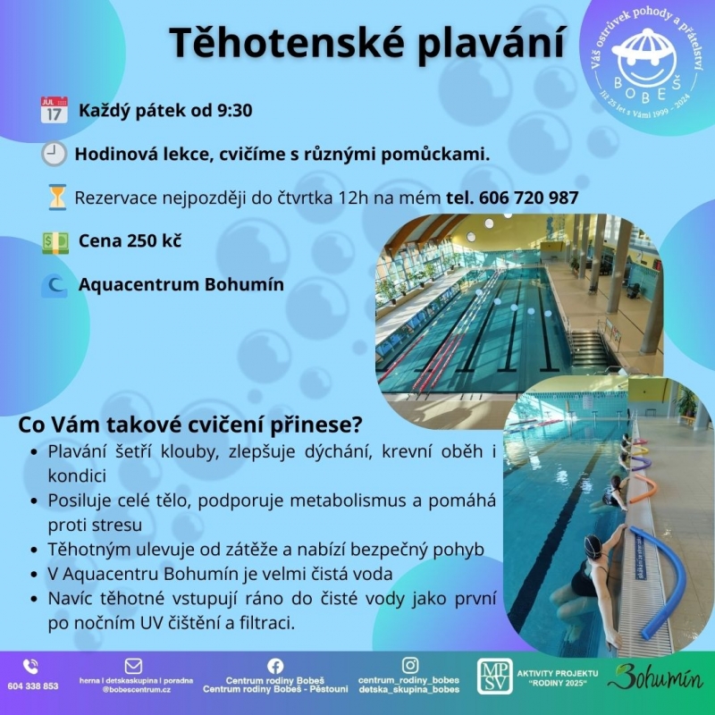 Přidej se k našemu pátečnímu bříšku klubu – plaveme, dýcháme, smějeme se a těšíme se na miminka NYNÍ PRVNÍ LEKCE ZDARMA KDY: Každý pátek - KOLIK: Cena: 250 Kč Rezervace: 606 720 987 – P. Jana Čurdová ...