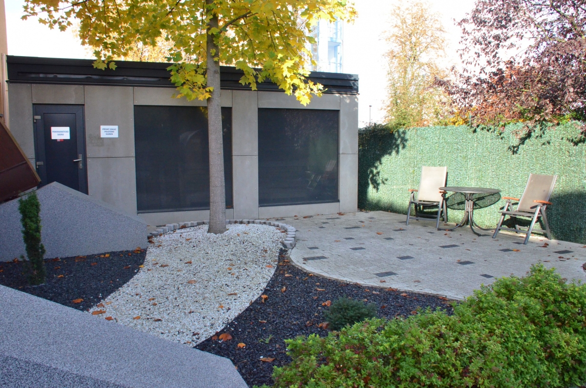 Box se třemi samostatnými sprchami vznikl přímo na míru pro zdejší saunový svět. „Získali jsme komfortní řešení hlavně pro zimní období, kdy byly původní sprchy často mimo provoz kvůli mrazu. Jakmile teplota klesne pod pět stupňů, box se automaticky začne temperovat. Do sprch je přivedena teplá i studená voda, a tak si na termostatickém ventilu každý může nastavit teplotu, která mu bude příjemná,“ vysvětluje vedoucí aquacentra Jaromír Voráč.