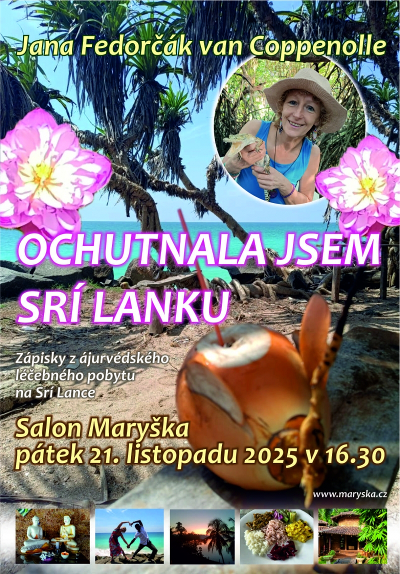 O exotické zážitky z ájurvédského pobytu na Srí Lance se podělí v pátek 21. listopadu Jana Coppenolle Fedorčáková. Salon Maryška od 16:30. Srdečně zveme. Autor: Jana Leparová ...