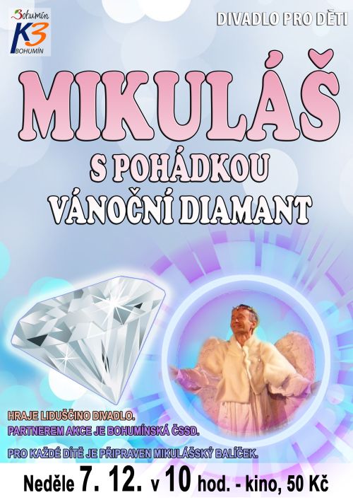 Než se objeví Mikuláš, čert a anděl, je pro děti přichystána pohádka Vánoční diamant.