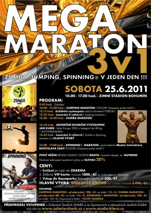 3 dvouhodinové maratony (zumba, jumping, spinning), exibiční vystoupení, zábava a hlavně plno skvělých cen...